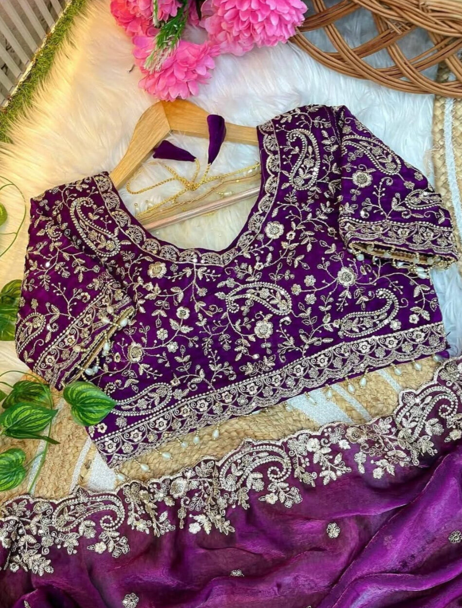 ব্লাউজ পিসেও হেভি এমব্রয়ডারি কাজ করা